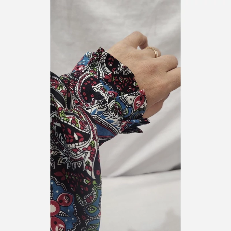 شناسه : #84096 نام : پیراهن طرح ژاله جنس : کرپ رنگ بندی : بته جقه, گل ریز سایز ها : 1(38_44), 2(46_52) قد حدود 140.جلوی سینه زیپ خورده .و دکمه مچ کاربردی