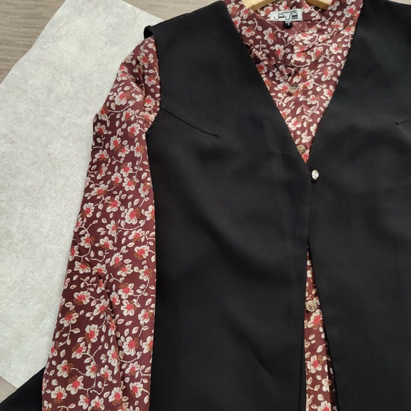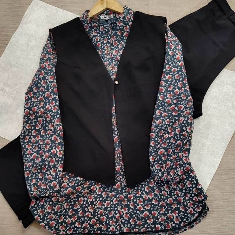 شناسه : #60595 نام : طرح سه تیکه(شومیز.جلیقه.شلوار)هیوا جنس : شلوار داکرون .جلیقه مازراتی.شومیز لنین نخ رنگ بندی : زرشکی, سبز سایز ها : 1(38_40), 2(42_44), 3(46_48), 4(50_52) #سه_تیکه قد شومیز:75(دکمه ها کاربردی).قدشلوار:104(دارای بند تنظیم).قد جلیقه:از پشت 55_از جلو 60
