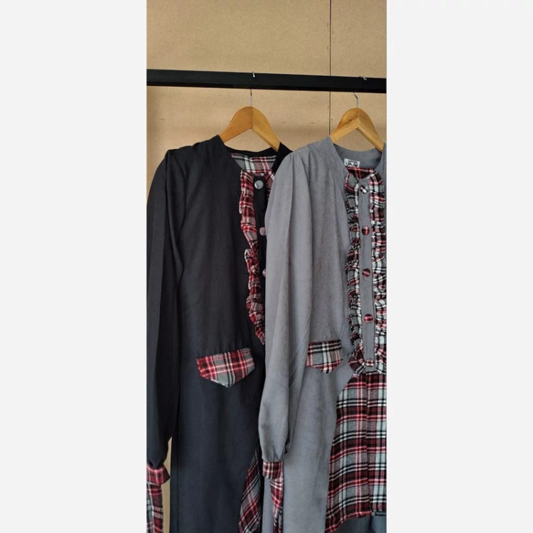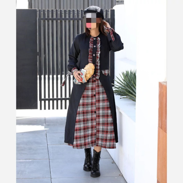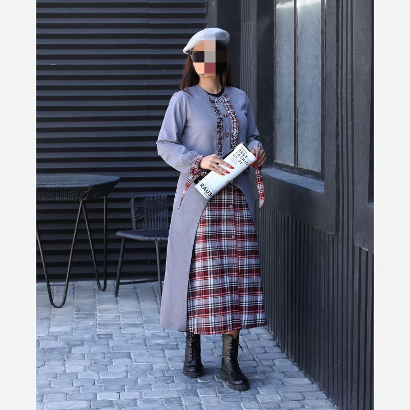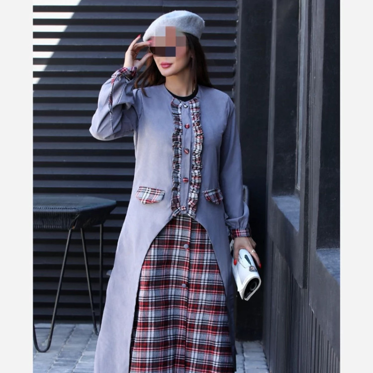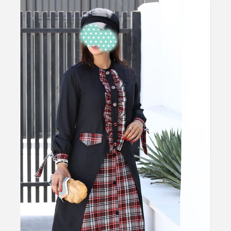دوتیکه و دکمه های مانتو کاربردی ...دامن از پشت کمر کش خورده ....(قد مانتو از جلو در کوتاهترین قسمت :45 قد مانتو از پشت:118).....قد دامن :حدود 83