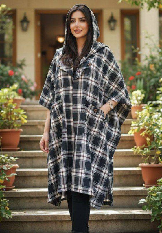 شناسه : #101183 نام : پانچ کلاه دار بهاره طرح آناهیتا جنس : چهارخونه بهاره رنگ بندی : سورمه ای, مشکی اندازه ها : فیری(۳۸_۶۰) قد:۱۰۵ جیبها کاربردی . قواره آزاد